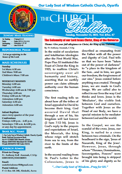 Download recent and archived church bulletins containing, photos, stories, news and event information.